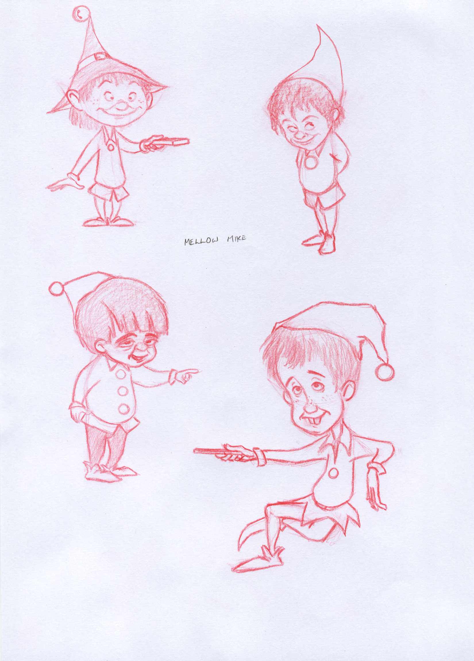 Character designs for a range of feature films, TV shows and commercials. Many of these concepts are variations of the same character so that the producer has a wide range of styles to choose from. When I’m given a brief to design characters I always try to exhaust the subject with as many variations on a theme that my imagination and drawing ability will allow.